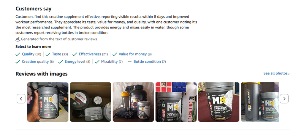 Product 1: MuscleBlaze Micronised Creatine Monohydrate CreAMP Powder, Citrus Blast (Pre Workout)
